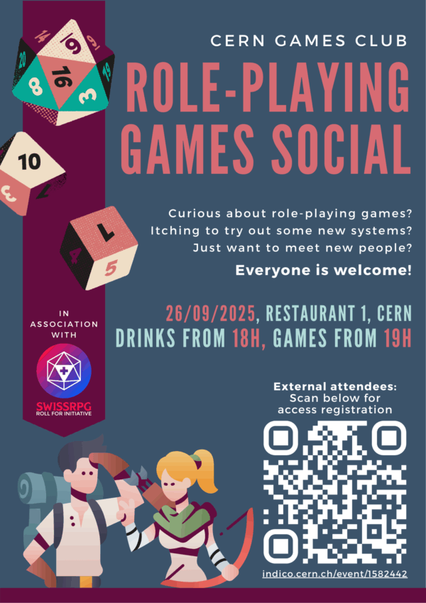 Restaurant 1, CERN Meyrin, SwitzerlandThe CERN Games Club will be having a Role-Playing Games Social on 9th May 2025 and SwissRPG was invited to participate All attendees who don't have a CERN badge need to register for the event so they can be issued a visitor card (you can use the link on the flyer below) Interested in tabletop […]